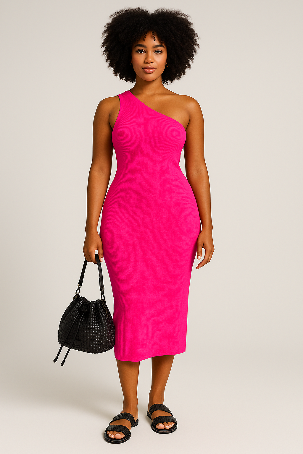 Frais, élégant et sophistiqué — confectionné dans un tissu côtelé qui met en valeur les courbes avec une silhouette chic à une épaule pour un style de jour comme de nuit