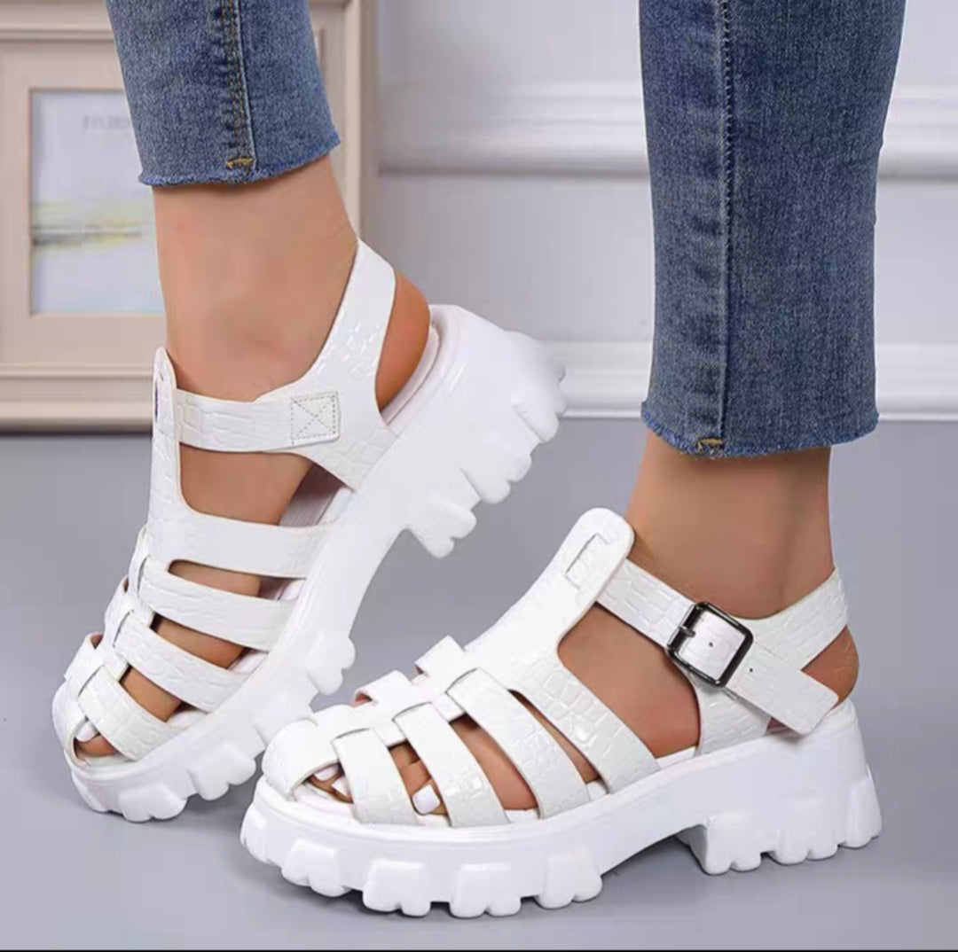 1. Sandales de gladiateur à motif croco épaisLe confort audacieux rencontre le style moderne — conçues avec une finition croco texturée, une boucle réglable et une semelle épaisse pour être porté toute la journée