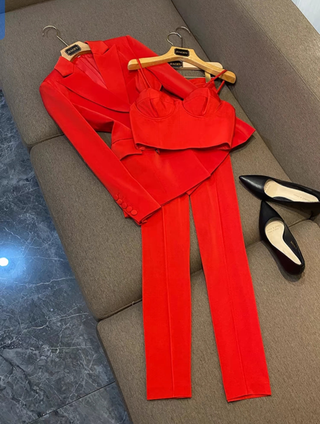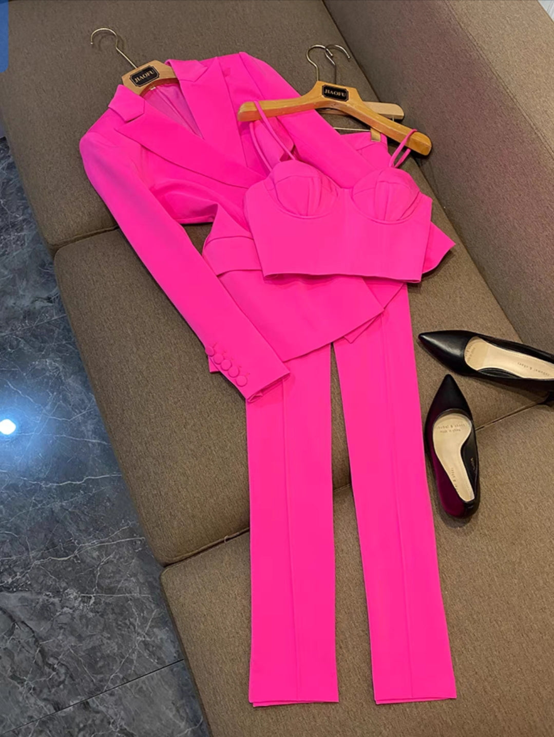 Ensemble Tailleur 3 pièces Femme -Blazer ,Crop Top &Pantalon